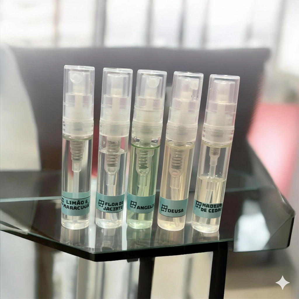 Você pode escolher* os 5 perfumes diferentes para experimentar nas Observações do Pedido no Checkout da compra